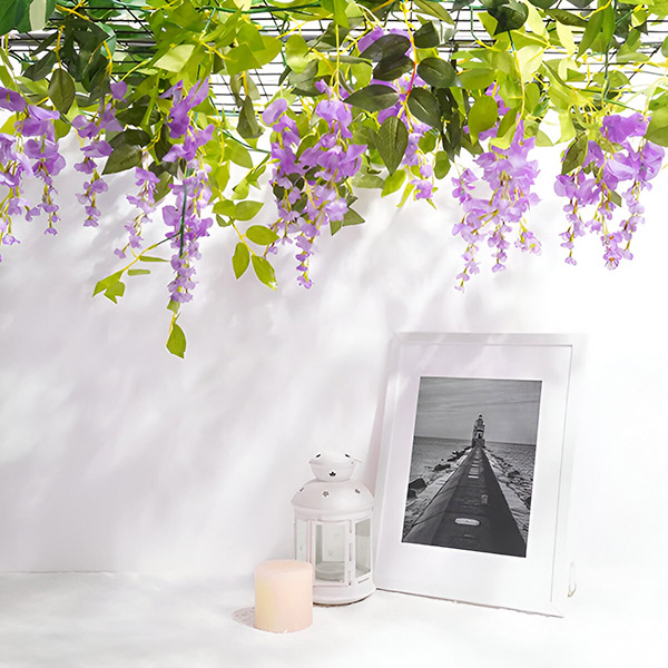 Chcete vytvoriť pôsobivé kvetinové aranžmány? Jasne fialová vistéria WISBLOOM doplnená sviežimi zelenými listami je ideálna na zdobenie oblúkov, mreží, stien, výkladov, reštaurácií, kancelárií, večierkov a ďalších miest. Tieto kvety, odolné voči UV žiareniu a s dlhou životnosťou, možno použiť v interiéri aj exteriéri a dodať im živý nádych v akomkoľvek prostredí.