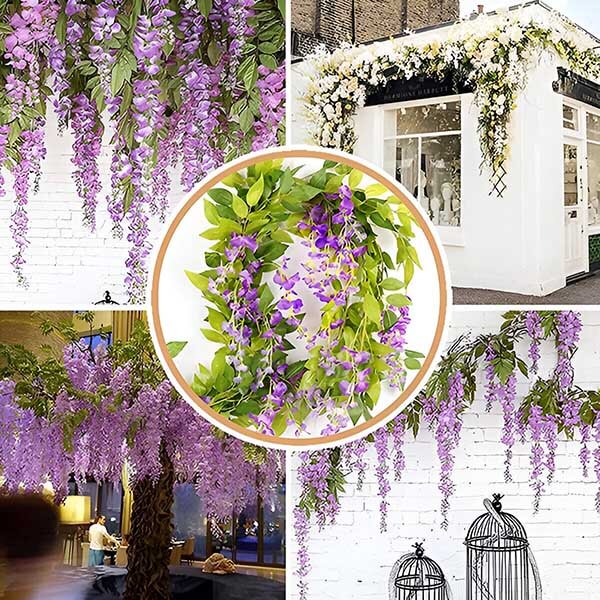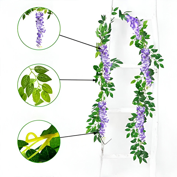 Nemusíte sa zaoberať listami alebo kvetmi, ktoré blednú a vädnú. Naša imitácia vistérie je vyrobená z vysokokvalitného hodvábu a pružného plastu, vďaka čomu si navždy zachová svoju vitalitu. Tieto odolné kvety sú navrhnuté tak, aby vydržali, a poskytujú vám krásne a trvalé dekoračné riešenie.