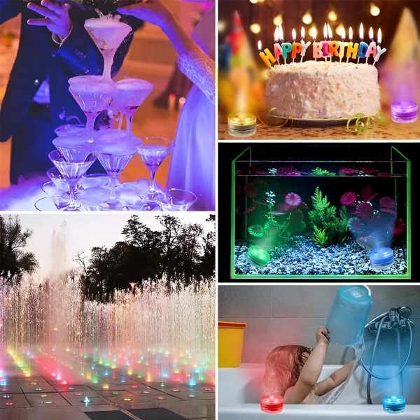 Žiadne zástrčky, žiadne iskry! Vylepšite atmosféru akvária, nádrže na vodu alebo vedierka na ľad. Tieto mini vodné svetlá so žiarivými farbami elegantne skrášlia váš bazén, akvárium, vázu alebo akýkoľvek iný dekor. Či už organizujete večierok, alebo si užívate pokojný večer, tieto všestranné RGB svetlá okamžite pozdvihnú vaše okolie.