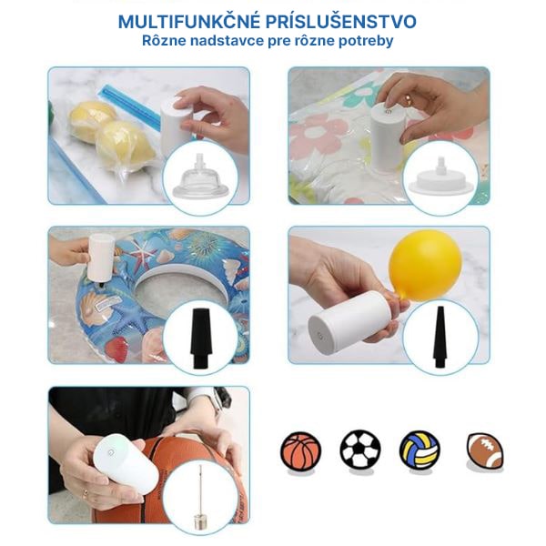 🎈 Slúži aj ako vzduchová pumpa – Nafukuje aj úložné vaky, balóny a ďalšie.