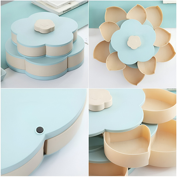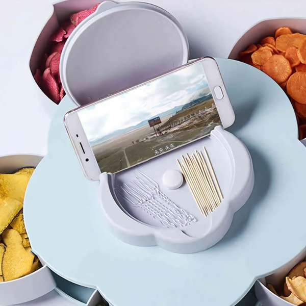 🌟 Pootočením veka odhalíte priehradky ideálne na sušienky, ovocie a iné.